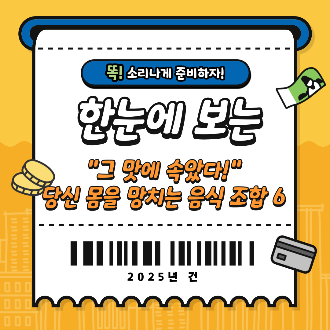 - A1. 네. “맛있는 것 = 건강한 것”은 아닙니다. 위 조합들은 겉보기에 편하고 맛있지만, 건강 목표가 있다면 피하거나 간격을 두고 섭취하는 게 좋습니다.