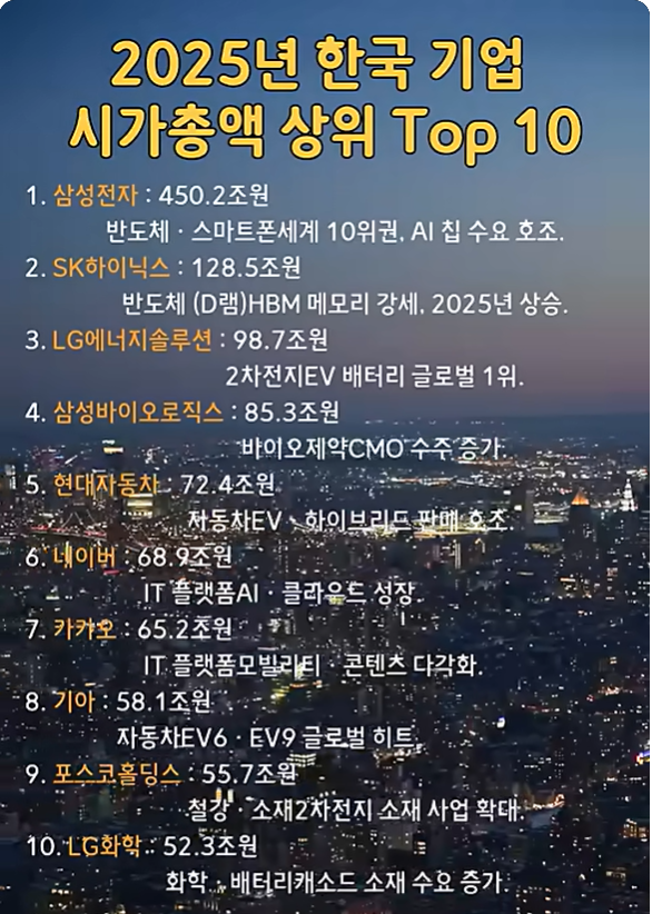 🔥 2025 한국 시가총액 Top10 핵심 이슈