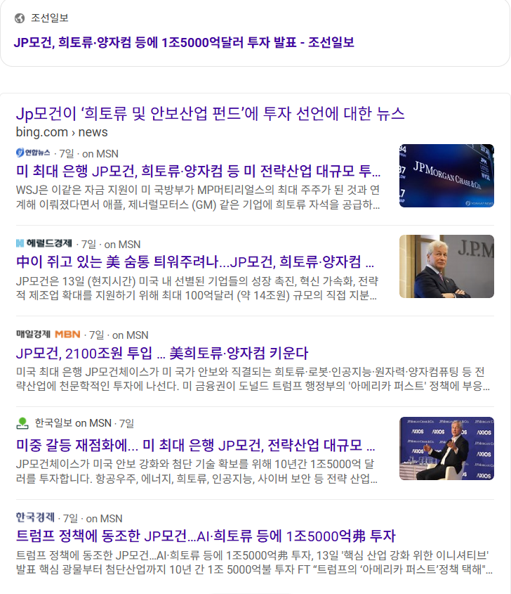 - ✔ JP모건이 ‘희토류 및 안보산업 펀드’에 투자 선언