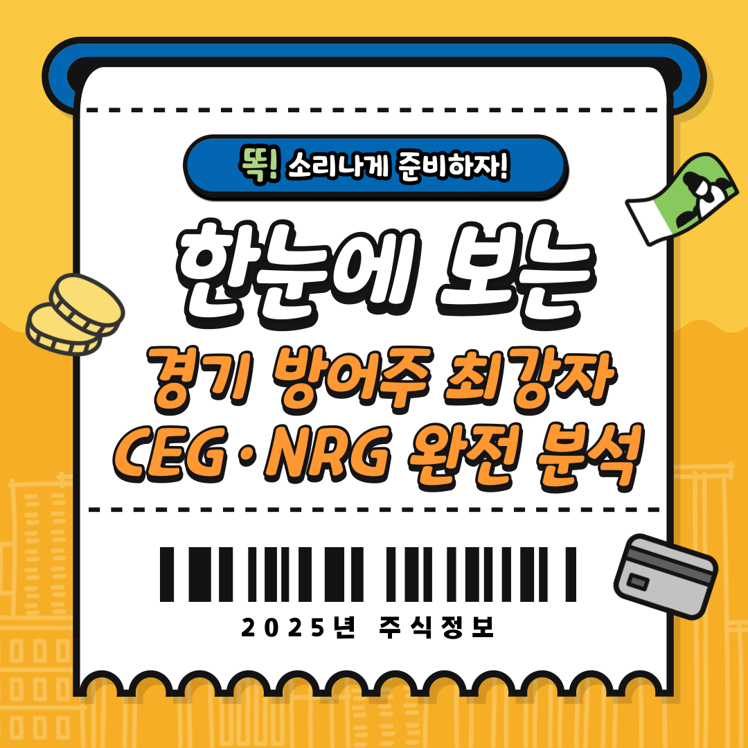 하락장에서 '믿을 만한 배당·현금흐름'을 찾는다면 CEG·NRG 같은 전력주는 필수 체크 종목입니다. 단, 에너지 정책·원자력 규제 리스크는 반드시 점검하세요.