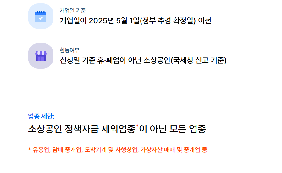 - 유흥·담배·도박·가상자산업 등 정책자금 제외 업종은 신청 불가