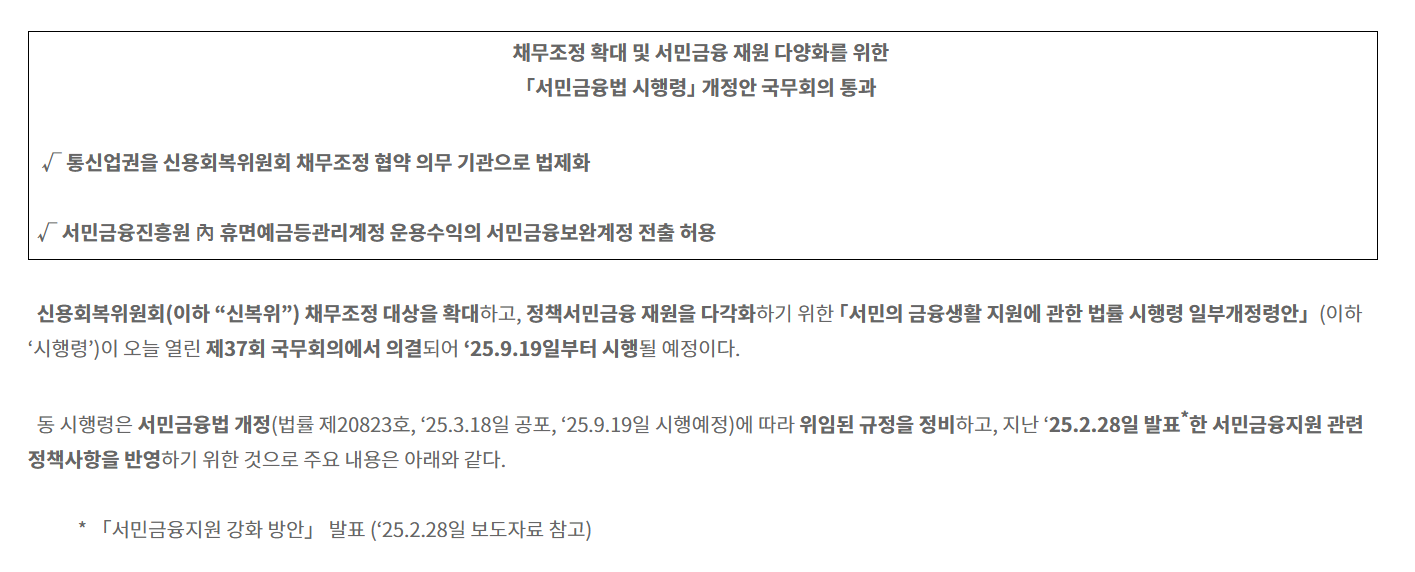 - 🏦 관련 기관: 금융위원회, 신용회복위원회