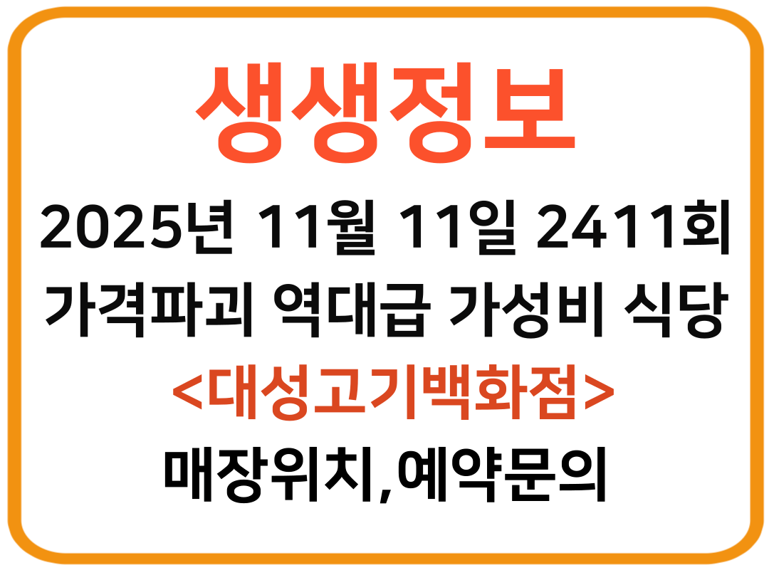 💥 생생정보 2411회 (2025년 11월 11일)