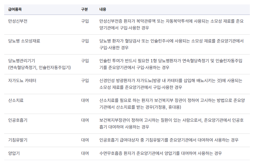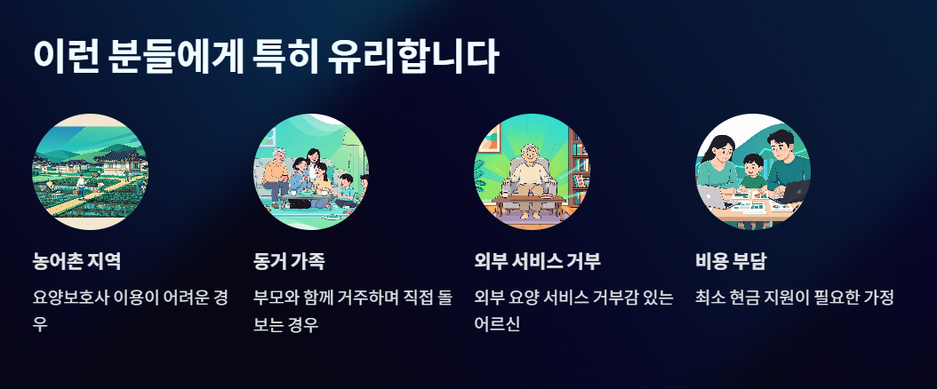 - 장기요양등급 + 가족 직접 돌봄 → 현금 지급