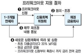 - 프리워크아웃: 채무 3억원 이하, 3~5년 상환, 법정 이자율 적용