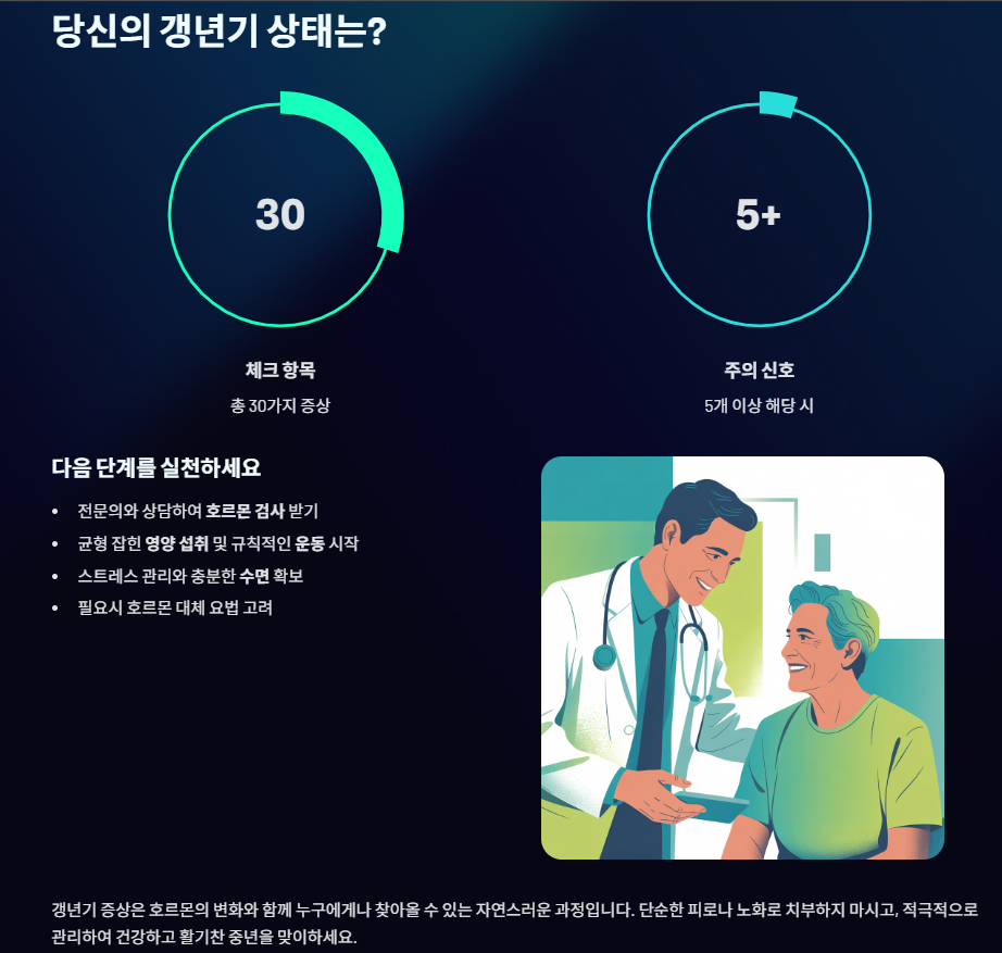 갱년기 증상은 삶의 질을 현저히 떨어뜨릴 수 있으므로, 자신의 상태를 정확히 인지하고 적절한 관리를 시작하는 것이 중요합니다.