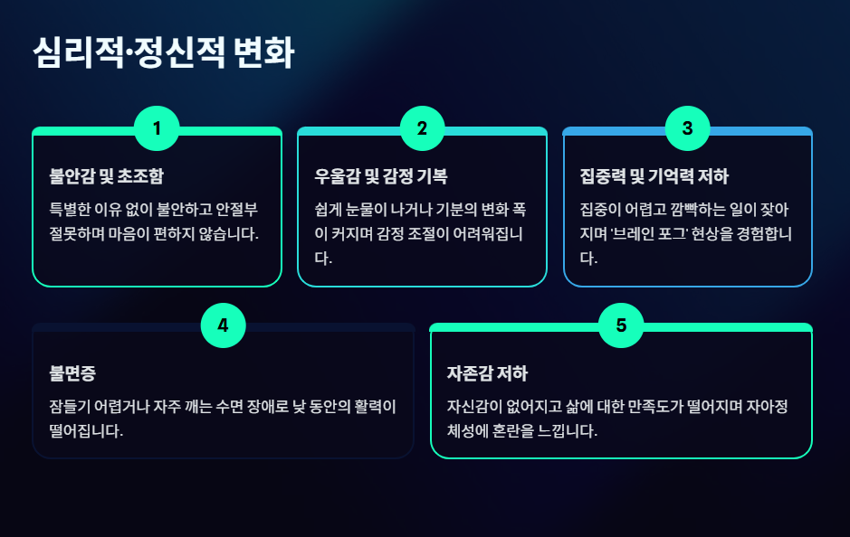 갱년기 증상 30가지 체크리스트: 신체적 변화부터 정신적 문제까지 (여성 및 남성 종합)