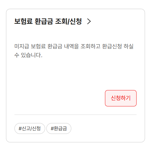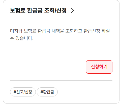 - 홈페이지: 국민건강보험공단 → [민원여기요] → [보험료/환급금] → [환급금 조회]