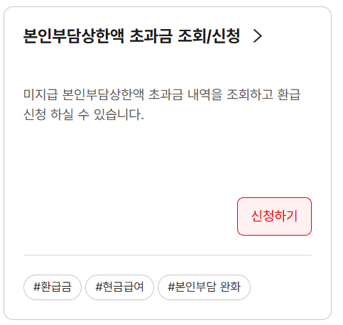 건강보험공단 병원비 환급 · 미지급 환급금 · 본인부담상한제 조회