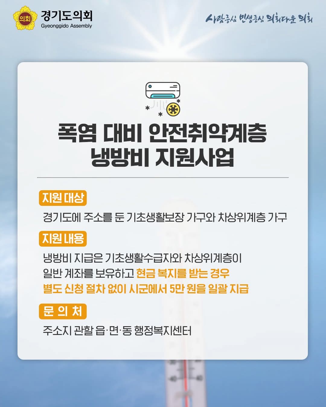 경기도 재해구호기금(폭염 대비) — 냉방비 지원 안내 · 신청방법 · 절감 계산기