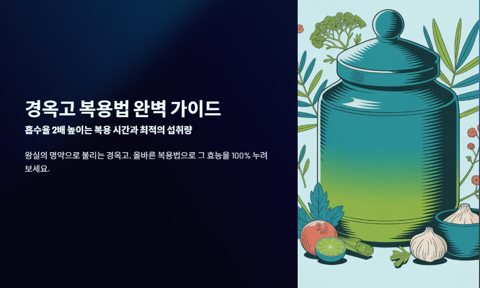 이 글에서는 경옥고의 효능을 극대화할 수 있는 최적의 복용 시간, 표준 섭취량, 그리고 효능을 반감시키는 금기 음식까지 명확하게 제시해 드립니다. 이 가이드를 통해 경옥고의 깊은 회복력을 온전히 누려보세요.
