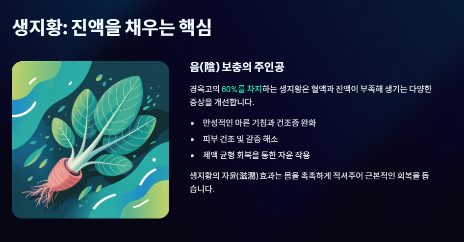 🥇 군약(君藥): 생지황 (生地黃) - 진액의 왕