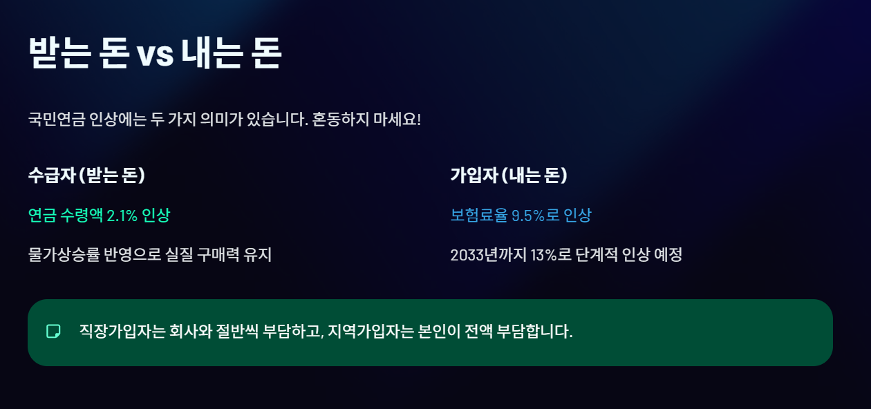 👉 연금 인상과 보험료 인상은 완전히 다른 개념이므로 혼동하지 마세요.