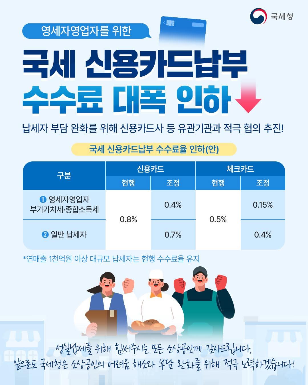 국세 신용카드 납부 수수료 대폭 인하