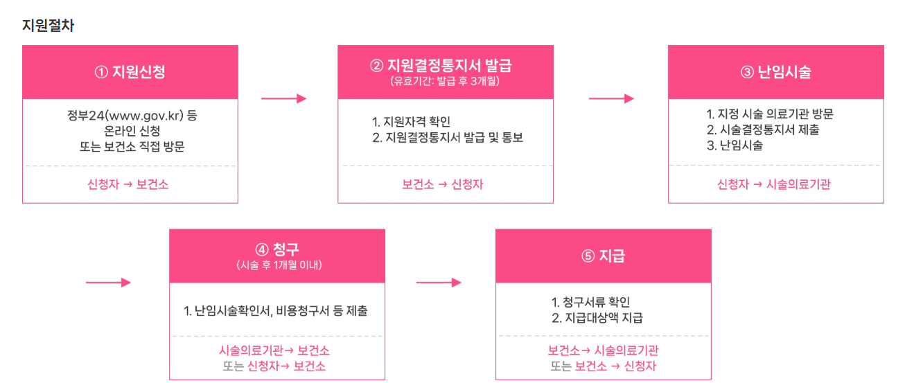 - 시술 중단의료비도 별도 지원 (공난포·미성숙난자·자궁내막불량 등 의학적 사유)
