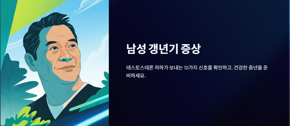 이 글에서는 테스토스테론 저하로 인해 나타나는 남성 갱년기의 10가지 핵심 증상을 체크리스트로 분류하여 제시합니다. 이 리스트를 통해 자신의 상태를 점검하고, 필요한 관리의 시작점을 찾으시길 바랍니다.