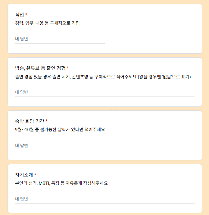 - 사진·자기소개 제출 / 캠핑경험·특기 사항 기재