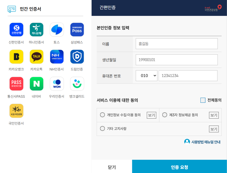 - 국민건강보험공단 홈페이지(NHIS) 접속