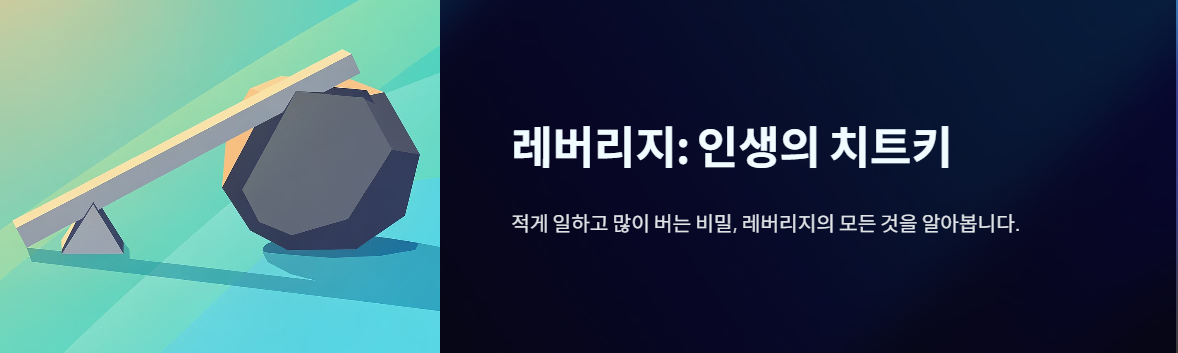 이처럼 **'나의 작은 힘(자본/시간)으로 큰 결과(수익/성과)를 만들어내는 모든 도구와 방법'**을 레버리지라고 부릅니다.