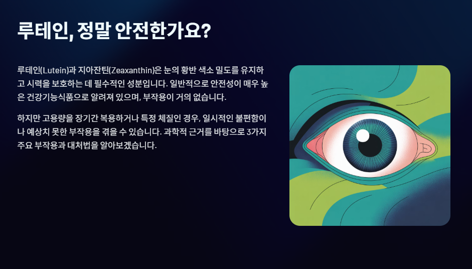 하지만 아무리 안전한 루테인이라도, 고용량을 장기간 복용하거나 특정 체질인 경우 일시적인 불편함이나 예상치 못한 부작용을 겪을 수 있습니다.