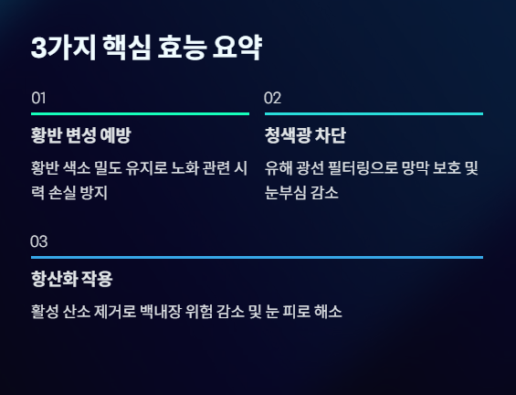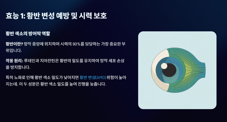 1. 핵심 효능: 황반 변성 예방 및 시력 보호
