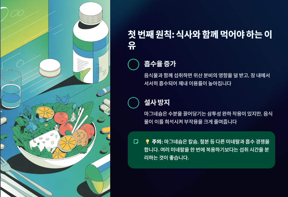 1. 마그네슘 복용의 '황금 원칙': 식사와 함께 또는 식후 즉시