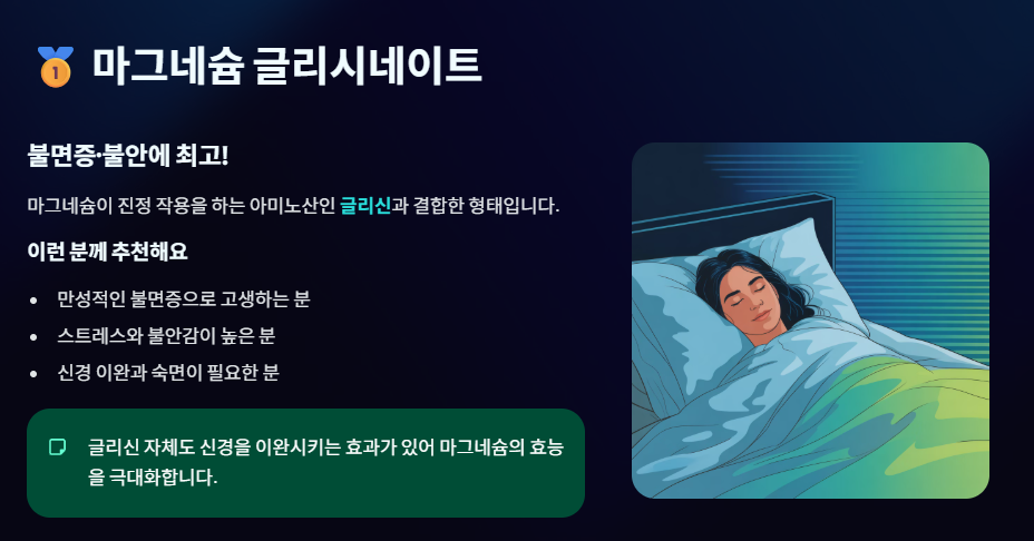 🥇 마그네슘 글리시네이트 (Magnesium Glycinate)