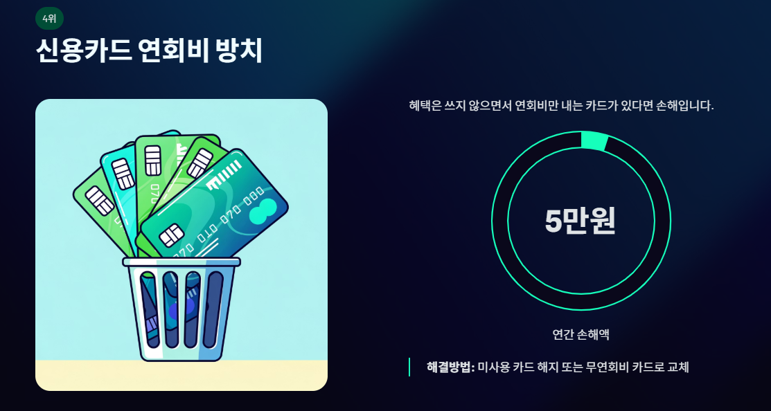 - 해결방법: 미사용 카드 해지 또는 무연회비 카드로 교체