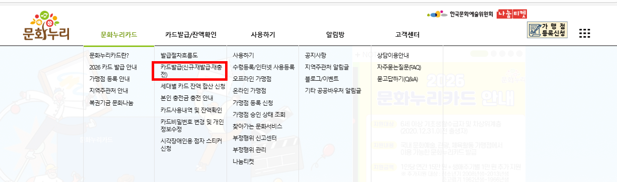 1️⃣ 문화누리카드 공식 누리집 접속