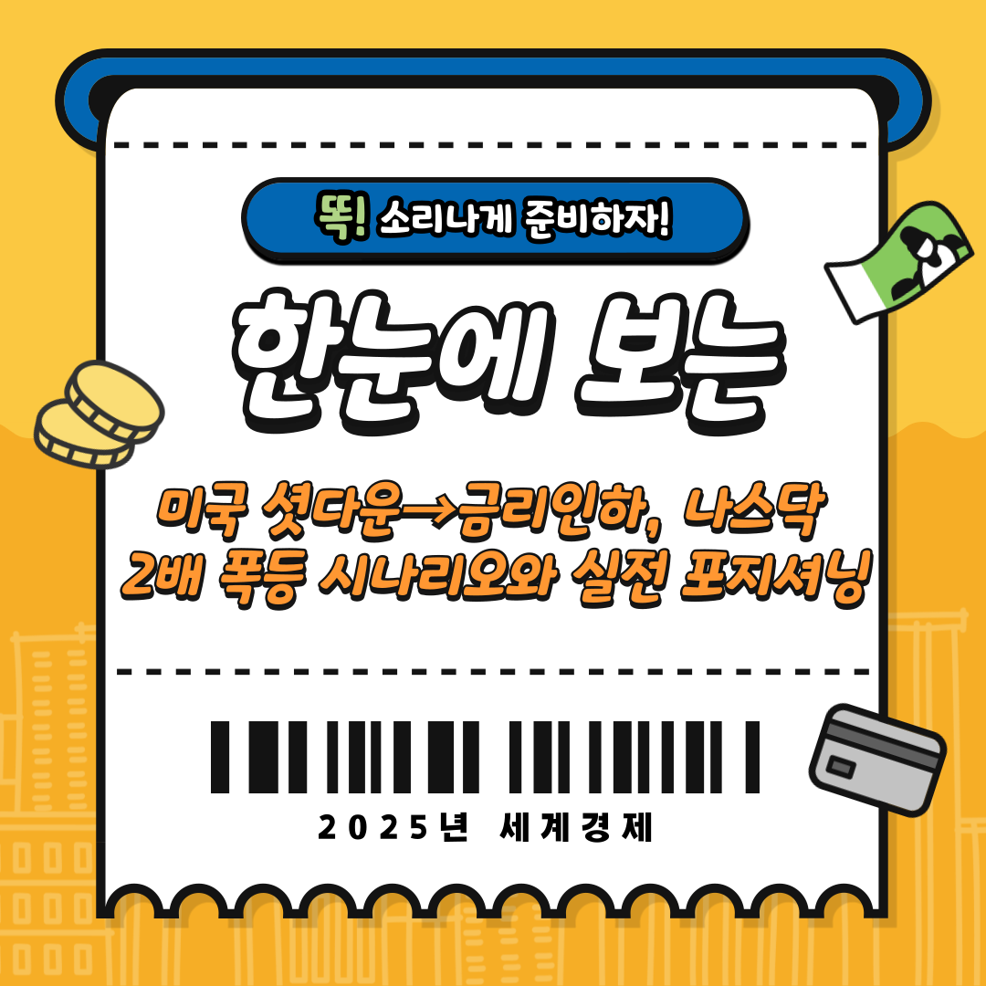 개요: 2025년 미국 셧다운은 시장에 ‘정책적 완화 기대’를 심어줄 수 있습니다. 이 문서는 왜 금리 인하 기대→나스닥 폭등의 연결고리가 강한지, 그리고 지금 어떤 포지션을 취해야 하는지 실전 관점에서 정리합니다.