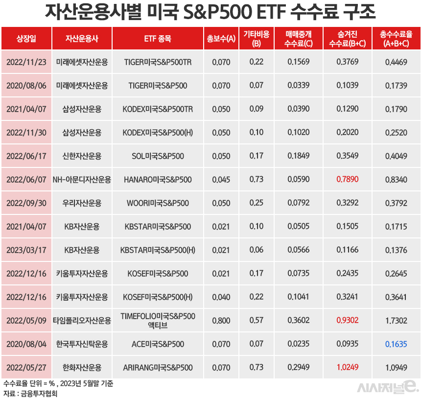 S&P500 ETF 수수료 완벽 비교 (TIGER, KODEX, KBSTAR, ACE)