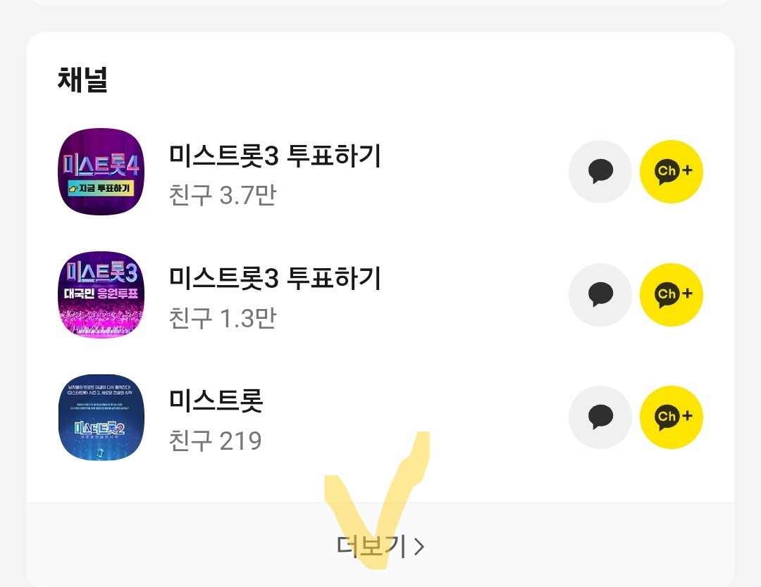 • 체크 표시된곳 중 한곳 눌러서 채널 들어가기 또는 채널 추가