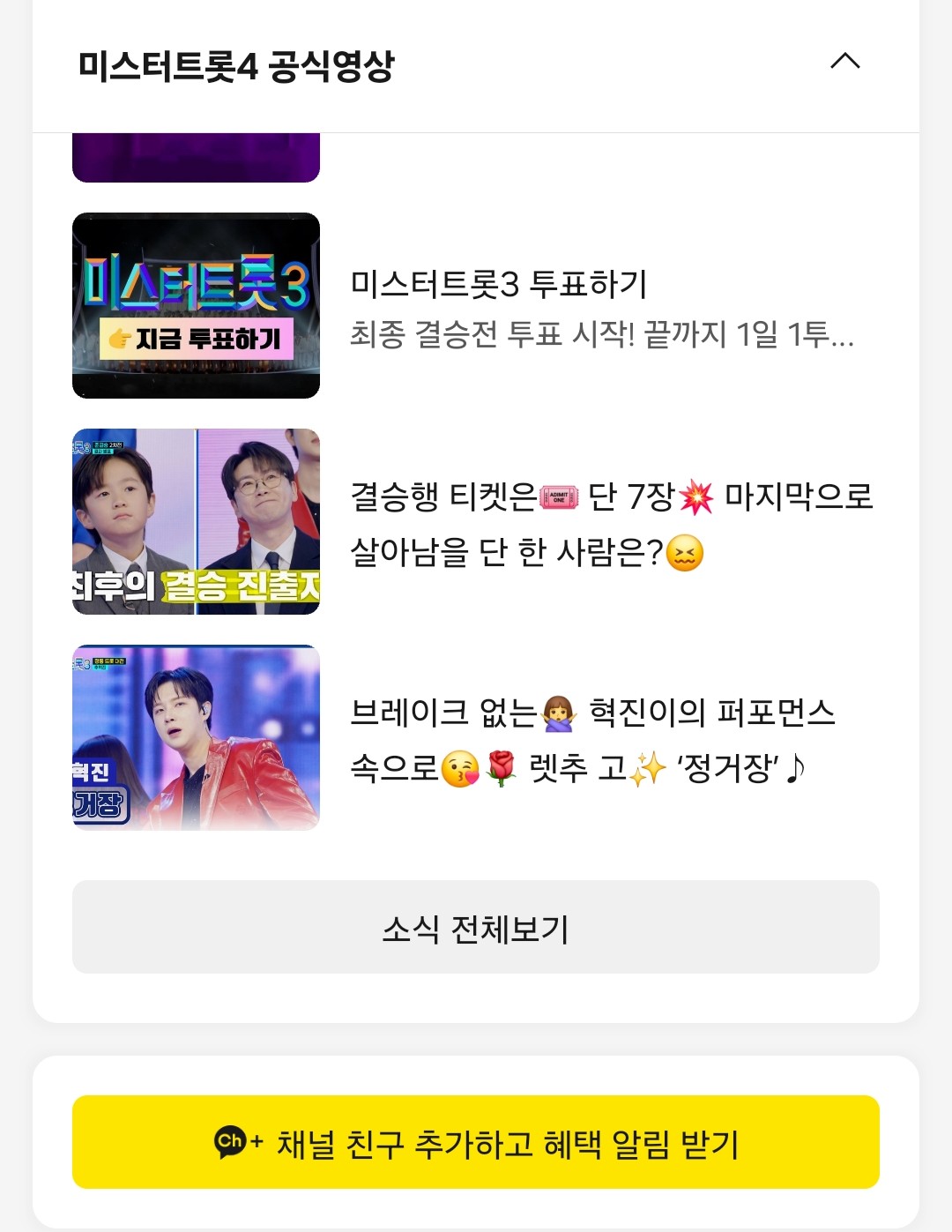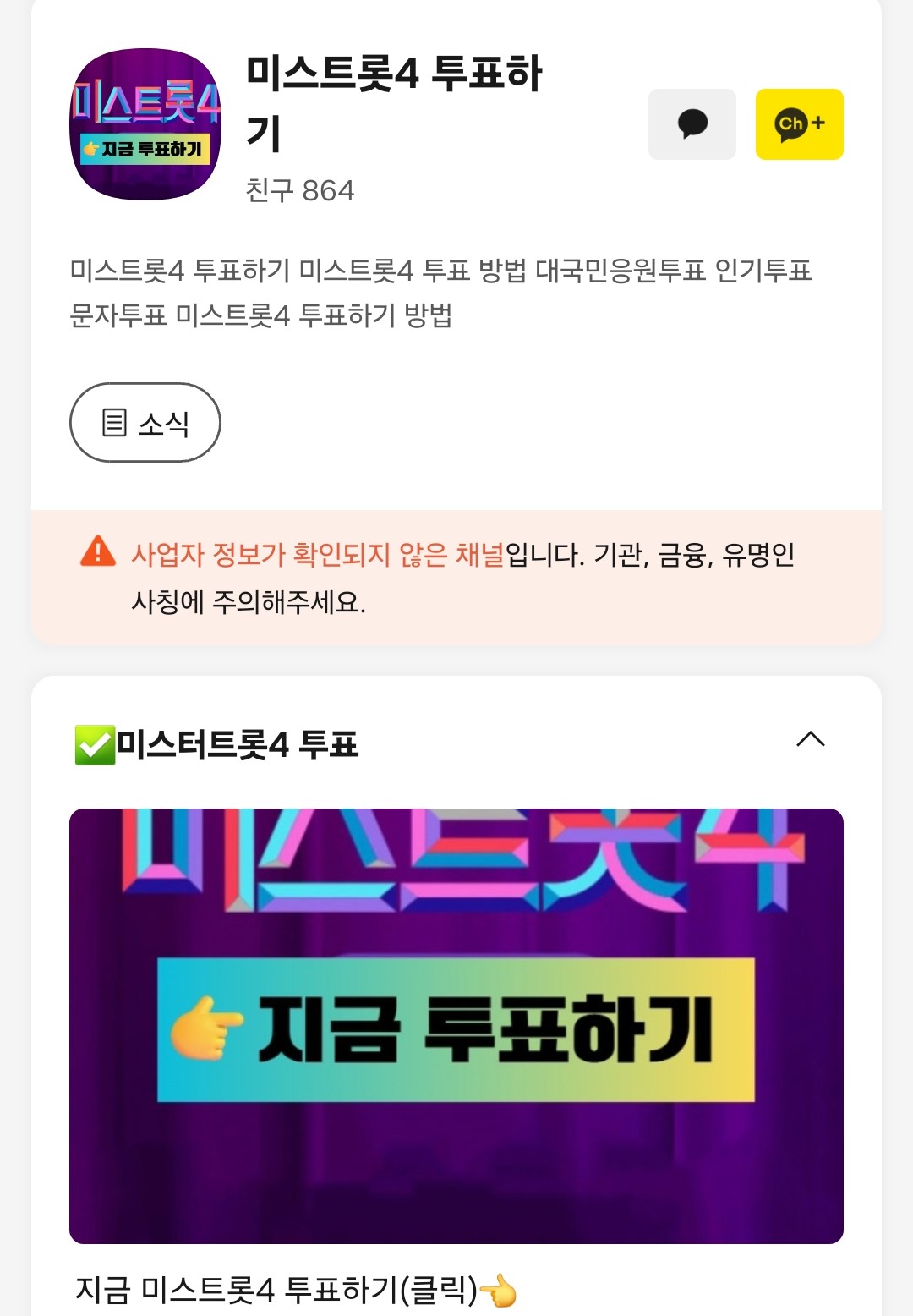 TV조선 트롯또는미스트롯입력- 공식 카카오 채널(인증 마크 ✅) 확인