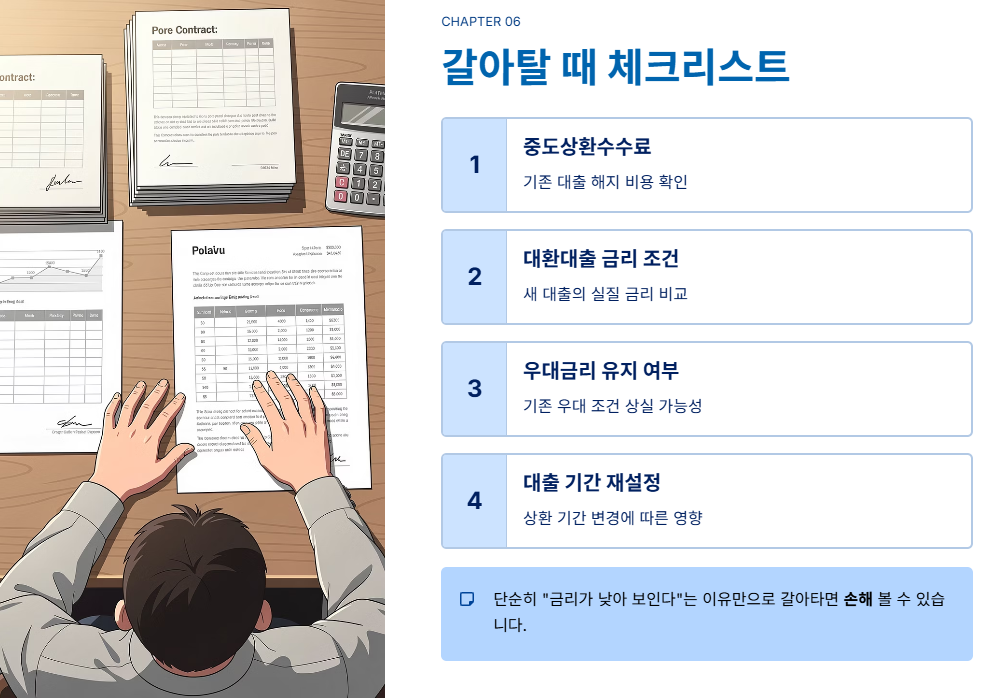 “갈아타기 타이밍? 지금이 기회다” — 4050 세대가 놓치기 쉬운 ‘대출 전환의 핵심’만 쏙 뽑았습니다.금리 부담에 시달리는 중년 실수요자에게는 정확한 상품 비교와 전환 타이밍이 곧 수백