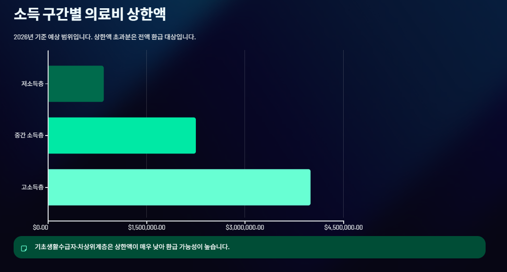 2️⃣ 소득 구간별 의료비 상한액 (2026년 기준)