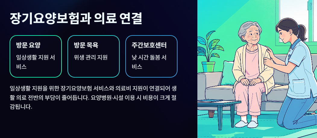 ✔ 일상생활 지원을 위한 장기요양보험 서비스와 의료비 지원이 연결되어 생활 의료 전반의 부담이 줄어듭니다.