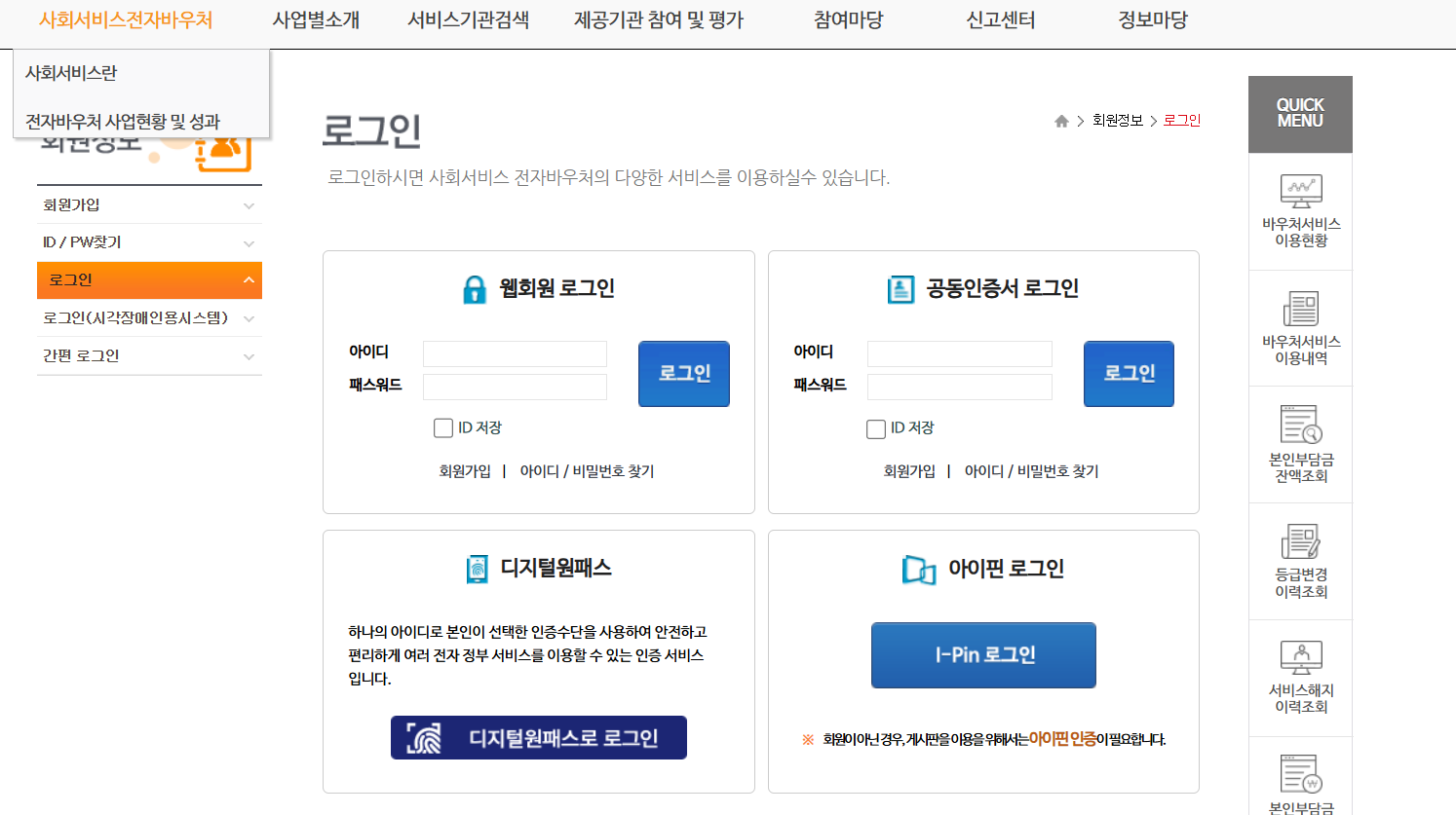 - 국민행복카드 (http://www.voucher.go.kr/common/main.do) – 이용자 포털