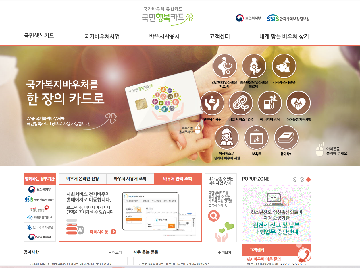 - 국민행복카드 (http://www.voucher.go.kr/common/main.do) – 이용자 포털