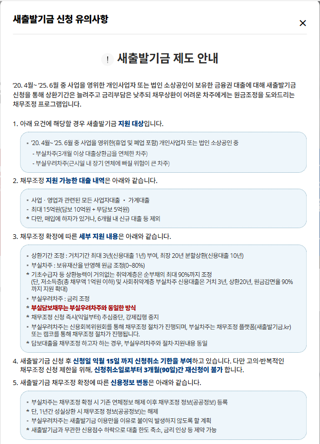 코로나19 피해 이후 부채를 안고 있는 소상공인·개인사업자를 위해 마련된 제도로, 기존 채무를 조정하고 저금리 대출을 통해 재창업 및 경영정상화를 돕는 것이 핵심입니다.