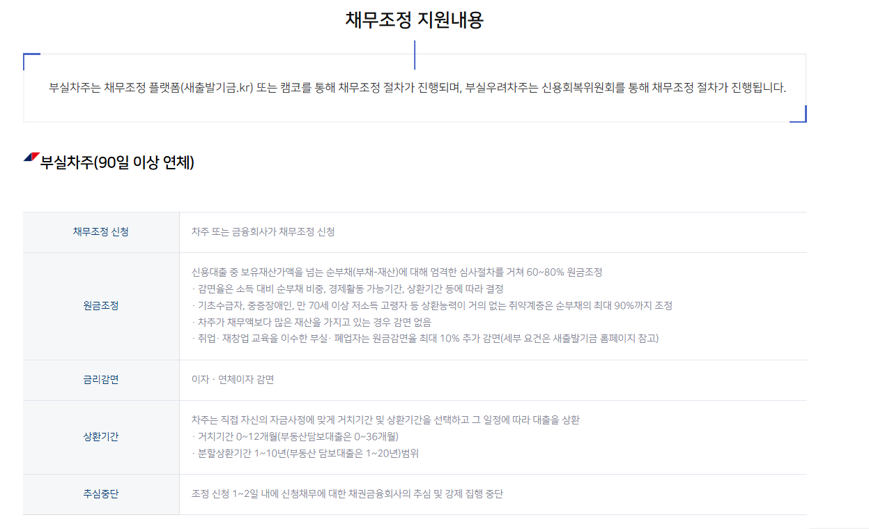 - 신청 채널: 캠코 공식 홈페이지 또는 새출발기금 통합포털