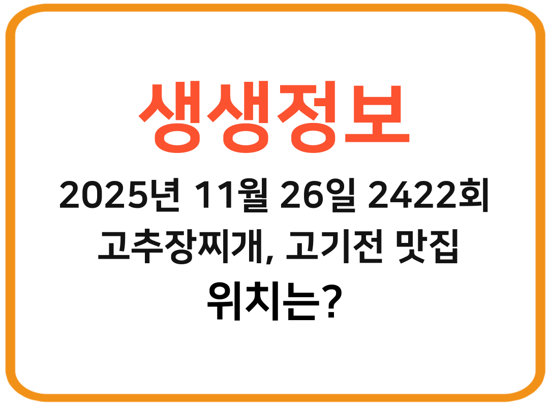 2025년 11월 26일 방송된 2TV 생생정보 2422회 할매 밥 됩니까 코너에서 소개된
