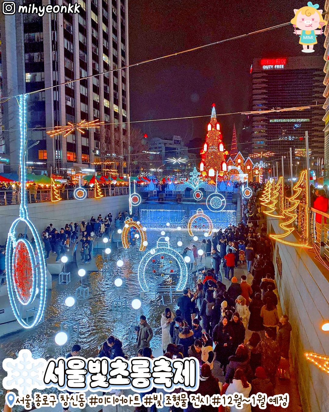 하이라이트: 청계천 전 구간이 예술적 조형물과 이야기를 담은 '빛 전시장'으로 변신합니다. 연간 테마가 바뀌어 매년 색다른 볼거리.
