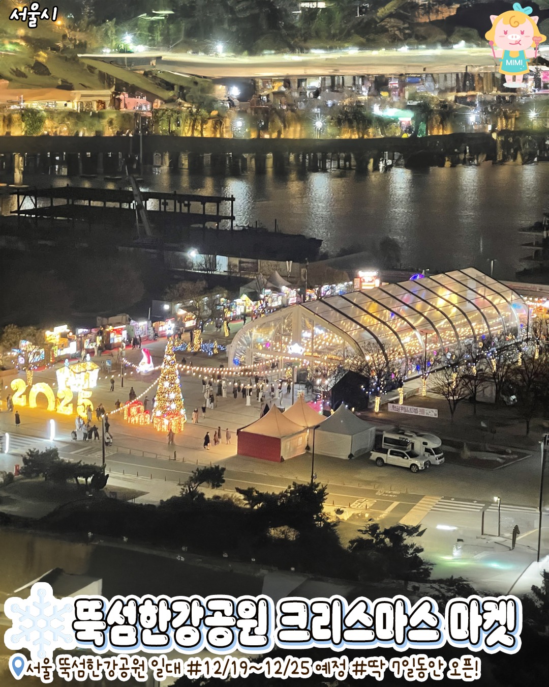 하이라이트: 크리스마스 분위기의 플리마켓, 따뜻한 먹거리, 핸드메이드 소품 상점. 포근한 야외 분위기에서 가볍게 즐기기 좋습니다.