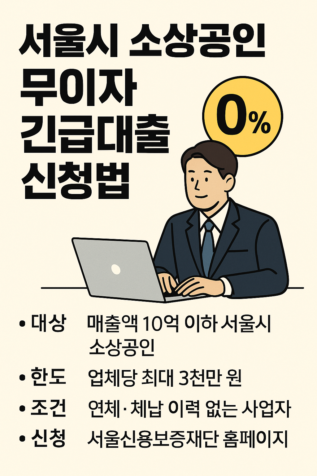 요즘 자영업자분들 사이에서 가장 많이 나오는 한숨입니다. 하루하루가 버겁고, 대출이라도 받아 운영자금을 마련하고 싶지만 높은 금리가 부담되시는 분들 많으실 텐데요. 서울시에서는 이런 상황에 놓인 소상공인을 위한 무이자 긴급대출 제도를 운영하고 있습니다.