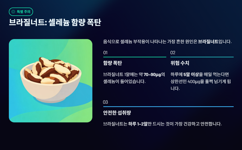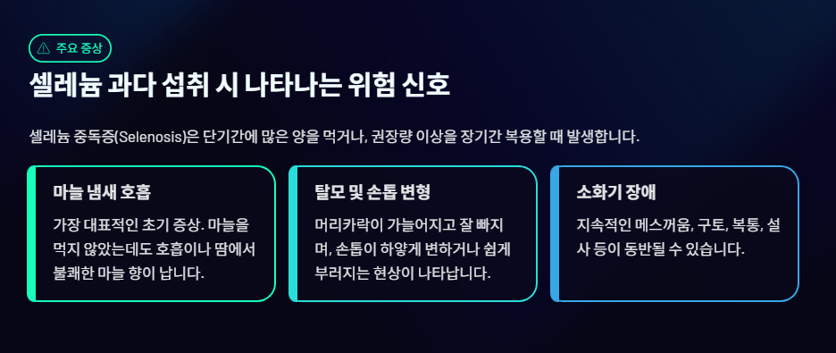 1. 🚨 셀레늄 과다 섭취 시 나타나는 주요 부작용