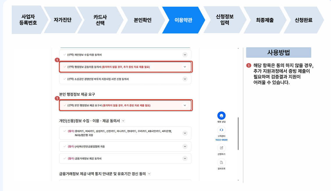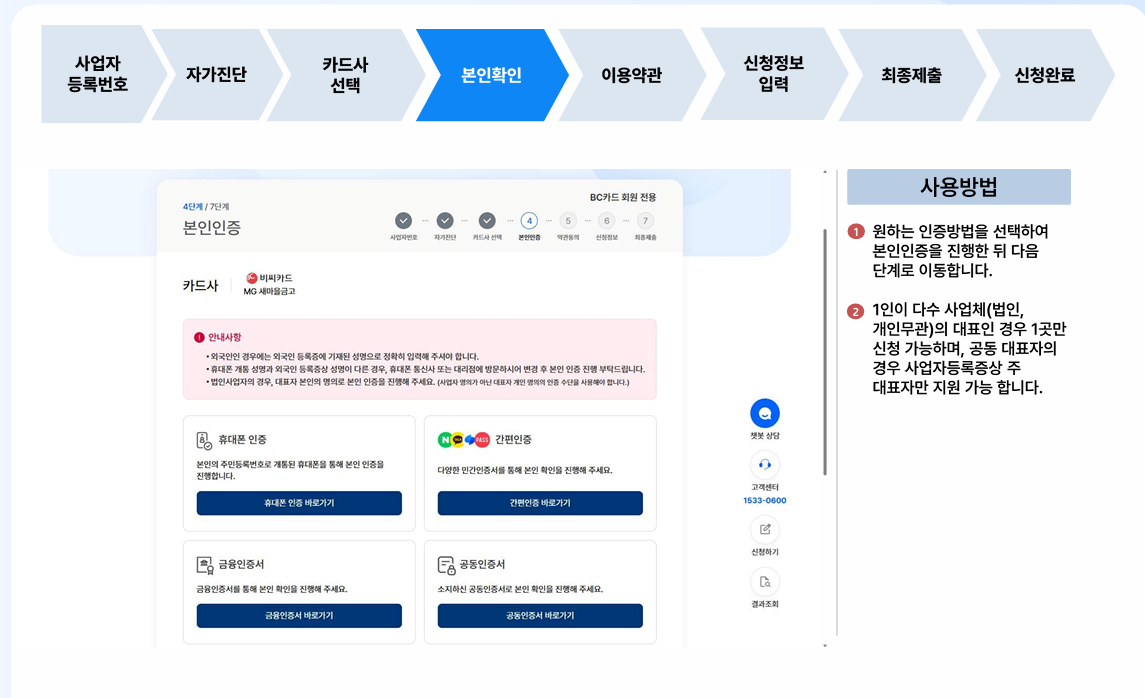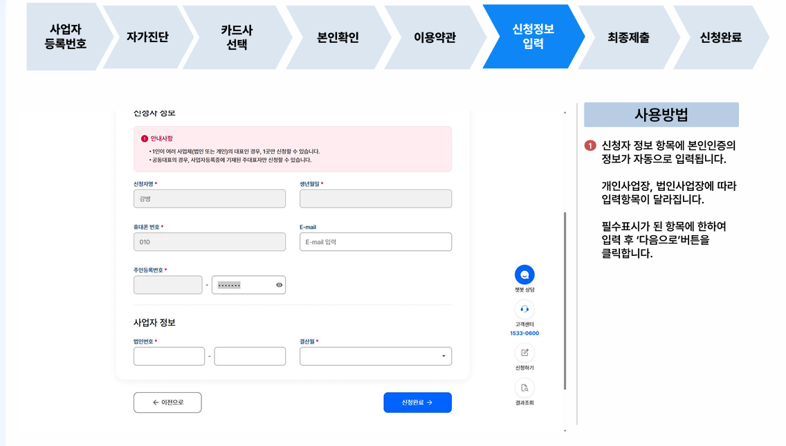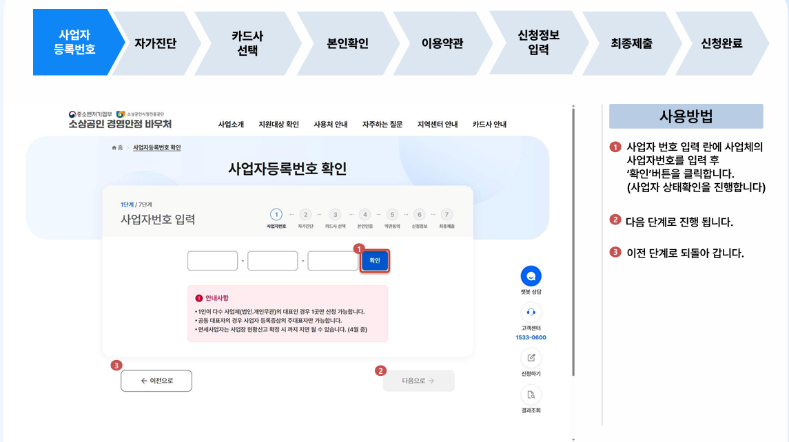 - 1인이 여러 사업체 운영 시 1곳만 신청 가능