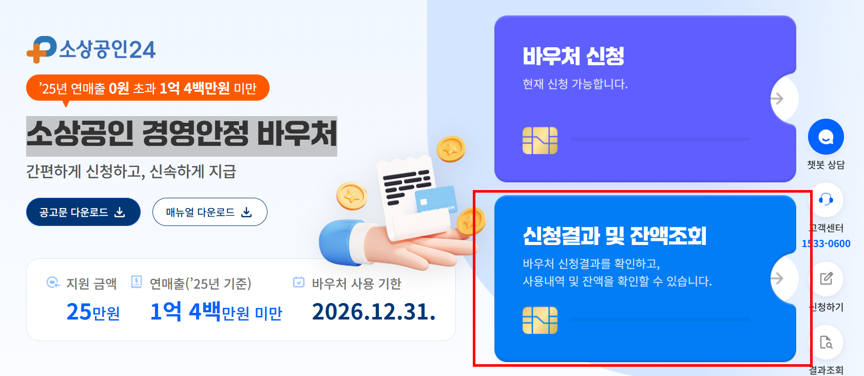 소상공인 경영 안정 바우처 신청하러 바로가기