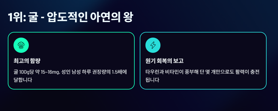 1. 🦪 굴 (Oysters) - 압도적인 아연의 왕