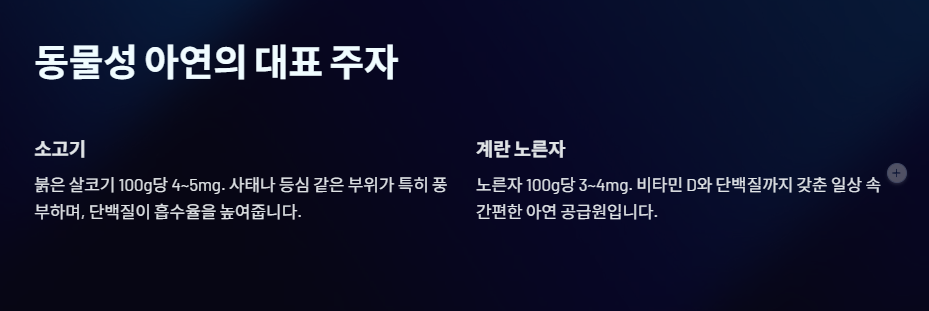• 특징: 특히 사태나 등심 등 붉은 살코기 부위에 많이 들어있으며, 성장기 어린이나 체력이 떨어진 성인에게 필수적인 식재료입니다.