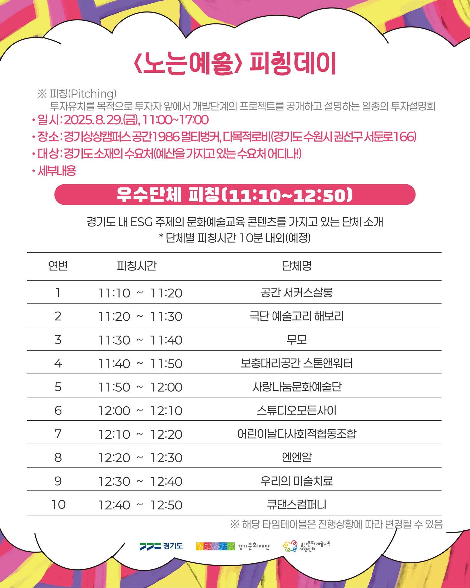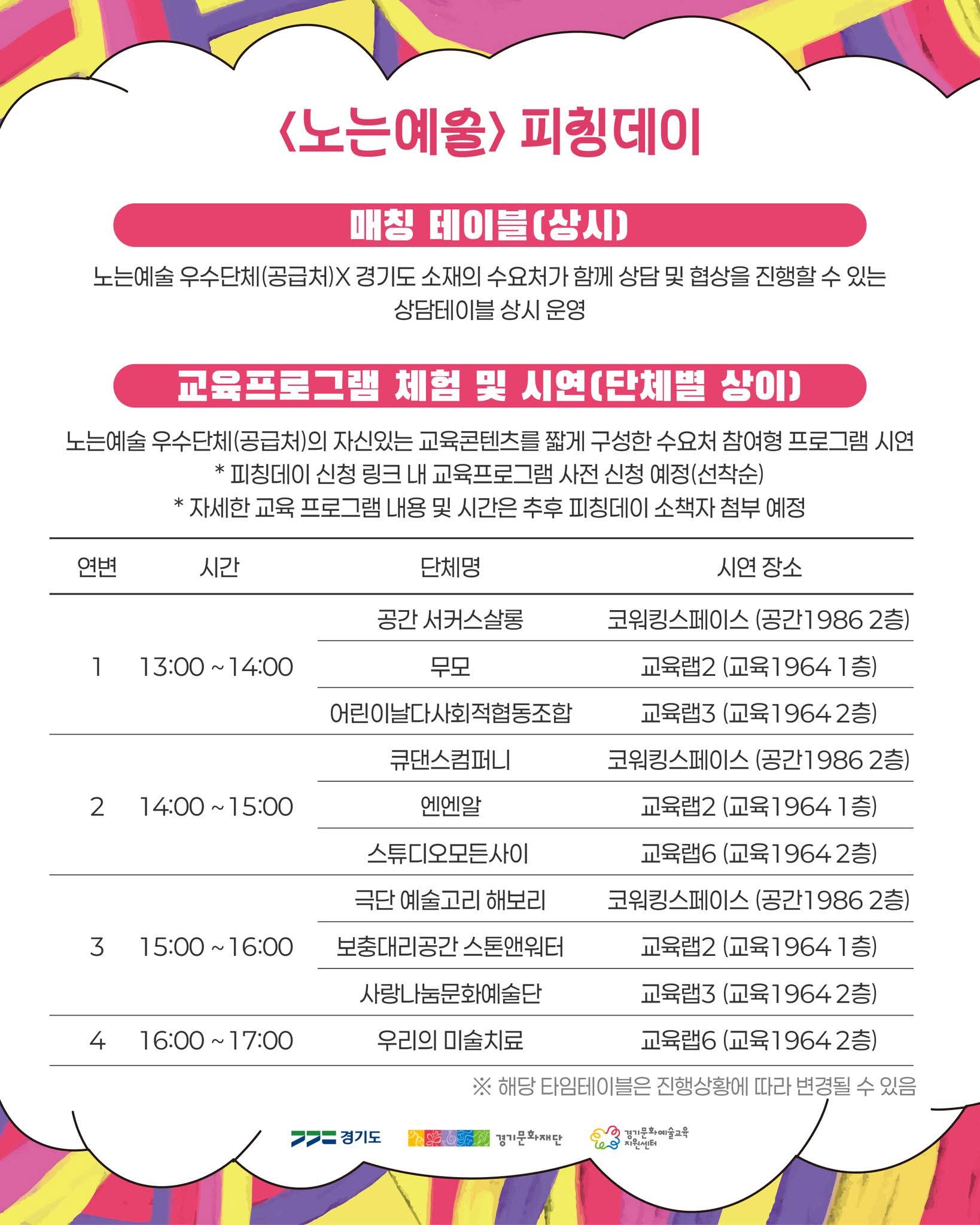 어디나 노는예술 피칭데이는 학교·지자체·문화시설·기업 CSR 등 예산 보유 수요처와